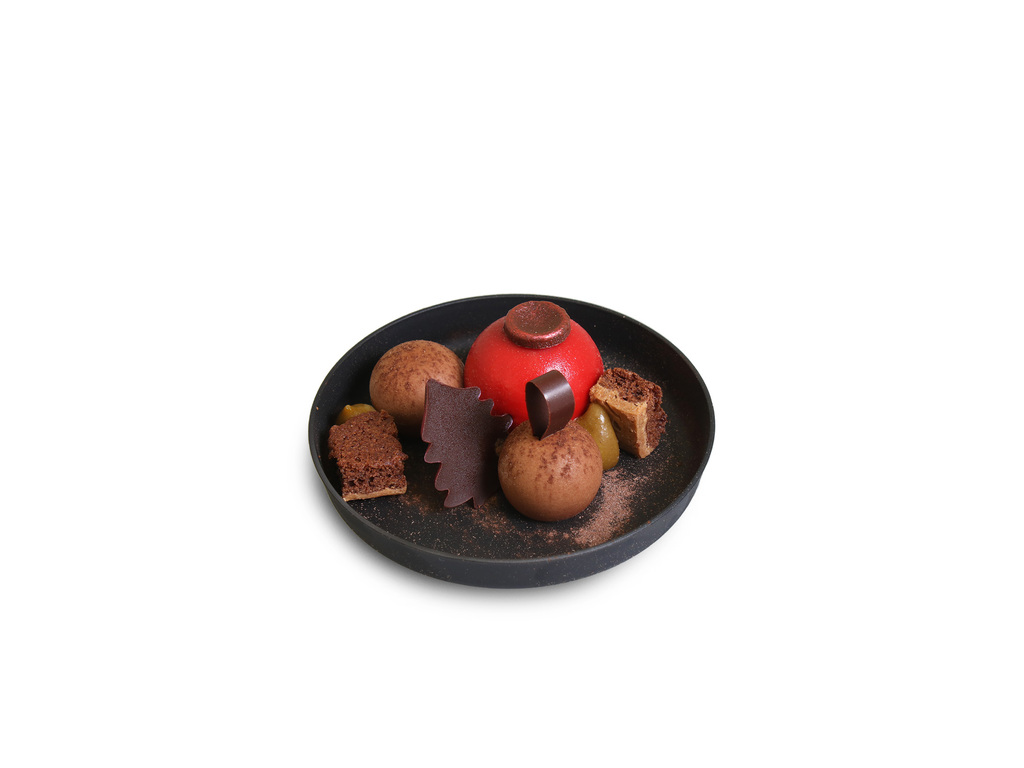 Jingle Bells ( chocolademousse, mandarijn, cremeux van Petit Beurre-koekjes, melkchocolade ) : 11.50€